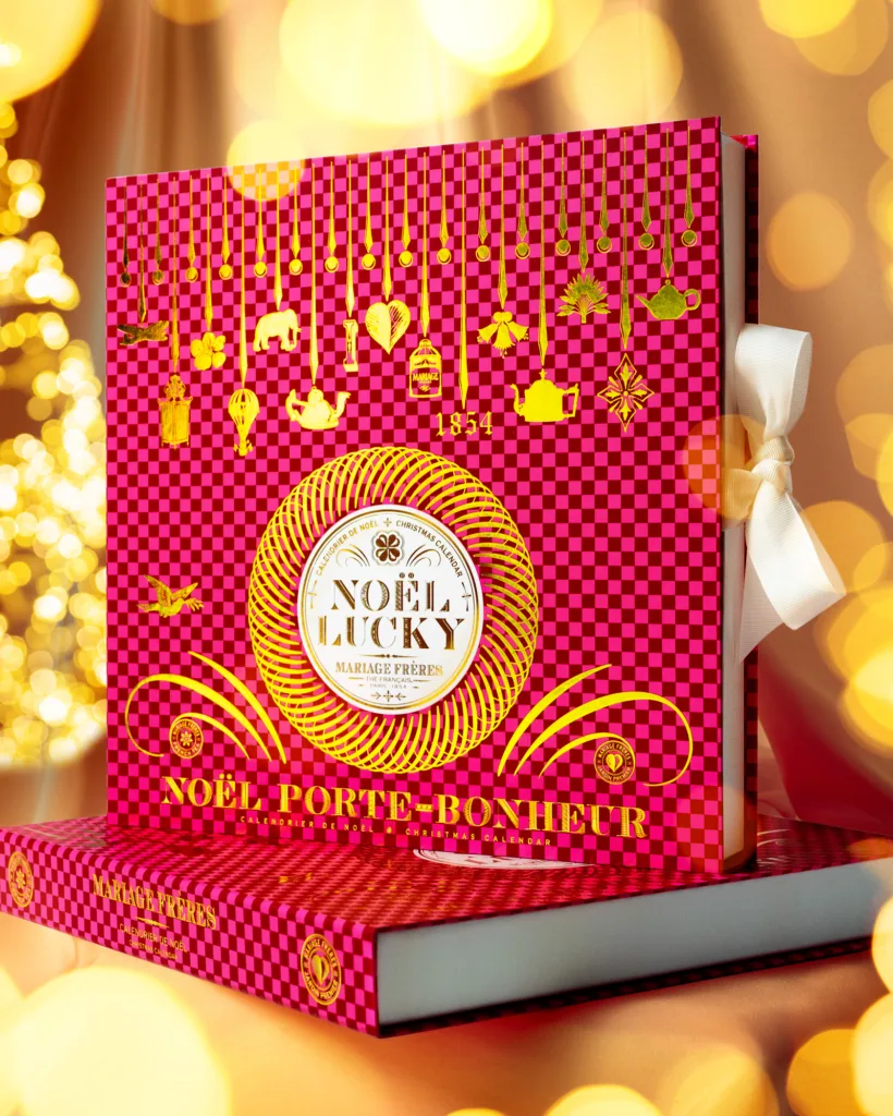 Chaque jour, vous aurez la chance d’ouvrir ce magnifique écrin, noué d’un ruban de satin blanc, pour y révéler une nouvelle création exclusive de la Maison de thé fondée en 1854, réputée pour ses thés haut de gamme et ses mélanges emblématiques. Habillé d’un damier aux nuances de rose et orné de charms dorés, ce calendrier dévoile 25 délicieuses surprises à découvrir au fil des jours. Chaque numéro inscrit sur les boîtes argentées est un porte-bonheur qui révèle des compositions inédites et des crus d’exception, culminant le 25 décembre avec une ultime merveilleuse surprise. Le tout est présenté dans 25 mousselines de coton délicates.