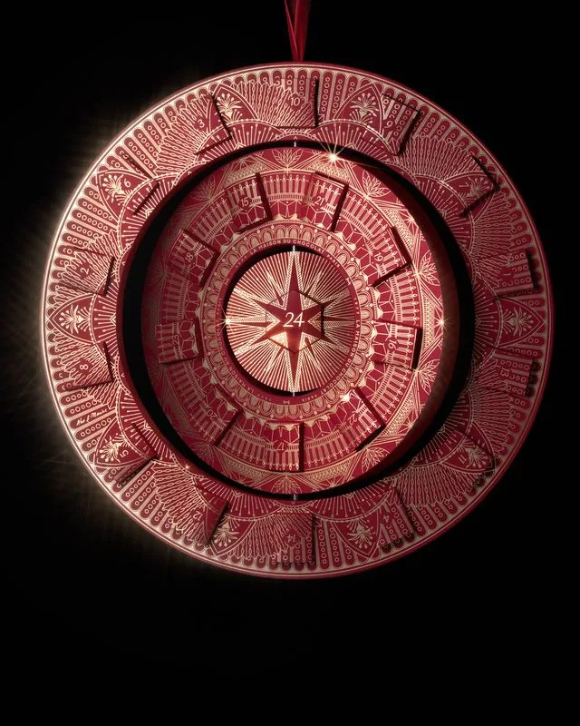 Vu du ciel, c’est un simple cercle. Mais à l’ouverture, c’est tout un univers qui s’ouvre à vous. Inspiré par la place de l’Étoile et ses douze avenues, le Calendrier Triomphe réinvente le décompte jusqu’à Noël avec élégance : 24 fenêtres dévoilent la magie parisienne, deux cercles mobiles rappelant les rues qui entourent l’Arc de Triomphe. Ce calendrier joue avec la géométrie de Paris et la transforme en un rituel chocolaté. C’est Noël à la parisienne : un peu théâtral et très raffiné. Ce ne sont pas 24 mais bien 30 attentions chocolatées : pralinés noir ou lait et carrés déments.