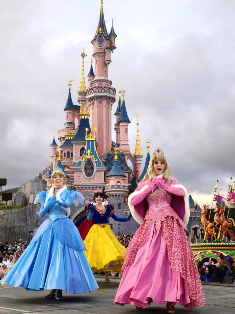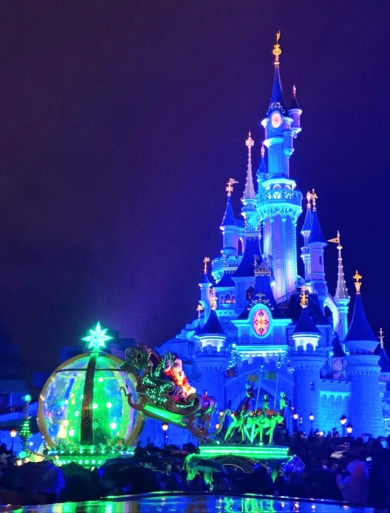 Don’t miss the daytime and nighttime parade “Mickey’s Dazzling Christmas Parade,” a vibrant spectacle featuring five themed floats, more than 200 illuminated costumes, and an upbeat musical atmosphere. This enchanting procession showcases Disney heroes and princesses, taking us on a whirlwind of joy and light, crowned by magical projections on the façades of Main Street. It’s breathtakingly magical!