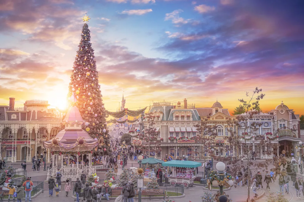 Ne manquez pas la parade diurne et nocturne « Mickey et sa Parade Étincelante de Noël », un spectacle haut en couleurs avec cinq chars thématiques, plus de 200 costumes lumineux, et une ambiance musicale entraînante. Ce défilé enchanteur met en scène les héros Disney et les princesses, nous emmenant dans un tourbillon de joie et de lumière, couronné par des projections féériques sur les façades de Main Street. C’est époustouflant de féérie !